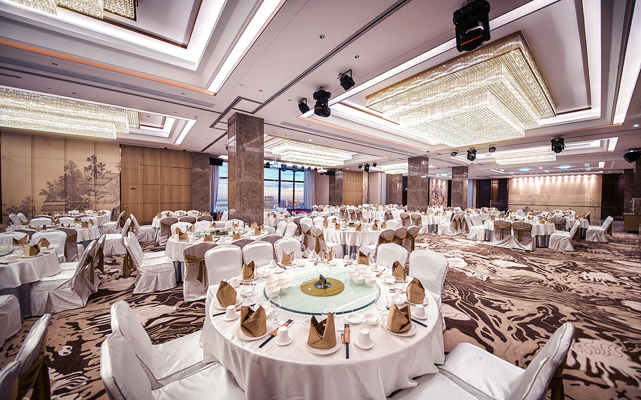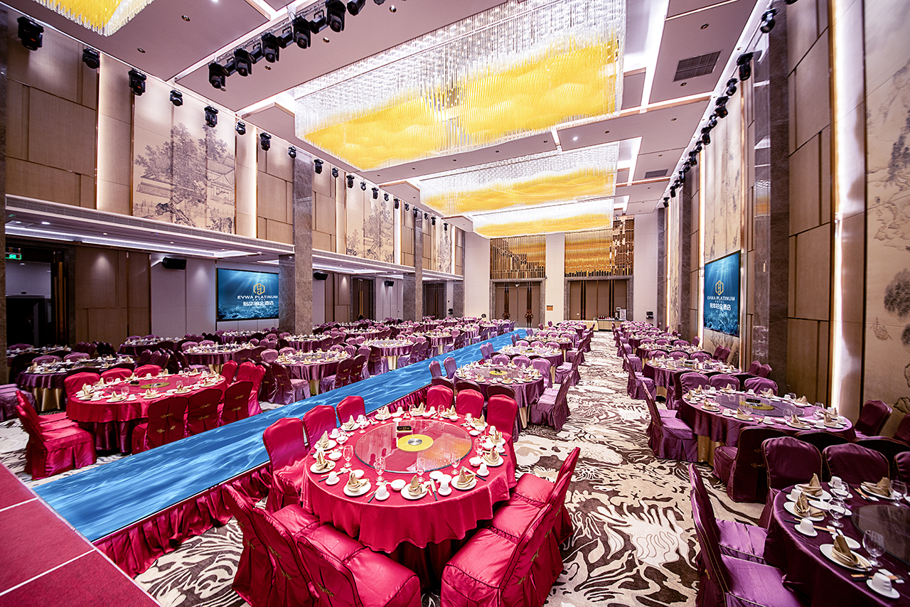 擁有(you)鉑金廳(ting)、鉆石廳(ting)、翡翠廳(ting)、水晶廳(ting)四個宴(yan)會廳(ting)及(ji)適合各式(shi)商務(wu)宴(yan)請(qing)豪華包(bao)房,宴(yan)會廳(ting)配備全息裸眼5D投影以及(ji)完善(shan)的宴(yan)會設(she)備,可(ke)容納幾(ji)十、幾(ji)百、甚至(zhi)上千人的喜宴(yan)、戶外婚禮(li)、高端私人PARTY、商務(wu)宴(yan)請(qing)、文化交流等(deng)活動。